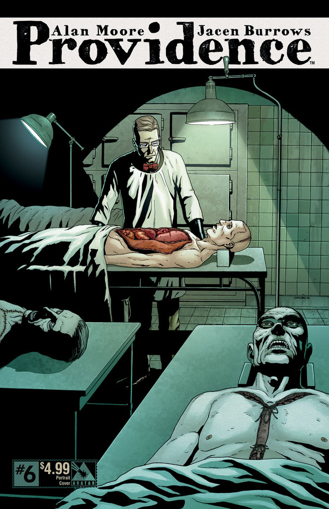 PRODUCT DESCRIPTION: Fans and critics alike are hailing Alan Moore’s Providence as the horror event of the year! Mild mannered newsman Robert Black is uncovering a mysterious undercurrent of fear as the pieces of the Lovecraftian puzzle slowly begin to make a coherent picture. The dramatic tension is building with each incredible ad-free 40 page issue and this issue begins the big unveils. The work has been researched and developed by Moore and Burrows over the course of several years. And the end result is an amazing tome of Lovecraftian influenced nightmares where Moore has written every cover, every single page, and every nuance of this work to create his most fully-realized vision to date.Fans of Moore’s immersive style and meticulous grasp of storytelling will be thrilled to add this essential piece of comics history to their collections! Available with Regular, Pantheon, Portrait, Dreamscape Wraparound, Women of HPL, and a special Ancient Tome Incentive cover, all by collaborator Jacen Burrows.
