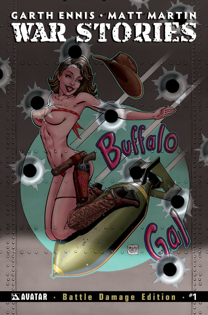 PRODUCT DESCRIPTION:  Garth Ennis' War Stories find a new home at Avatar with the launch of this ongoing monthly!   Pulling tales from real conflicts throughout modern history, this series is where a master storyteller brings the horrors of war to life in comics.  Ennis travels the timeline to pull some of the most harrowing tales of valor and bloodshed from history’s most violent battles with his trademark wit and spot-on dialogue to show the humanity within the inhuman horrors.  The first story is Castles in the Sky, a tale of early bomber pilots and their incredibly difficult missions. Available with Regular, Wraparound, Good Girl Nose Art, and Battle Damage Retailer Incentive covers by Matt Martin.