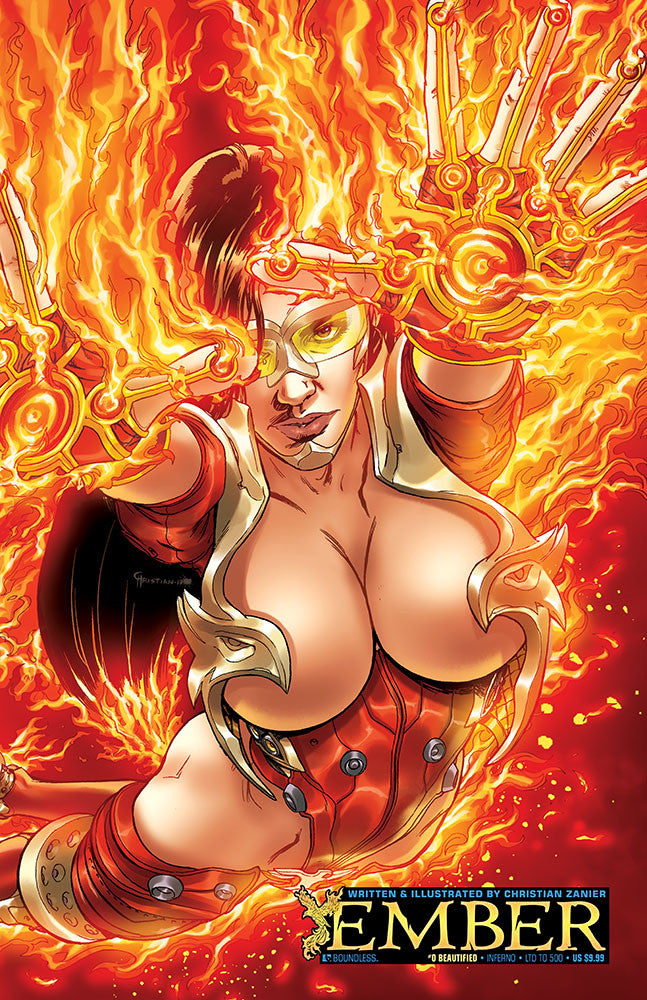 Ember is making her triumphant return, joining up with the Lookers, this summer! But we have so many more Boundless fans now than when we released the first issue of Ember several years ago, we wanted to do something special to give everyone a chance to be caught up with the story. Christian Zanier, the creative mastermind behind Ember, is re-mastering all the pages from #0 for a Beautified edition, and even adding a couple red hot NEW pages!