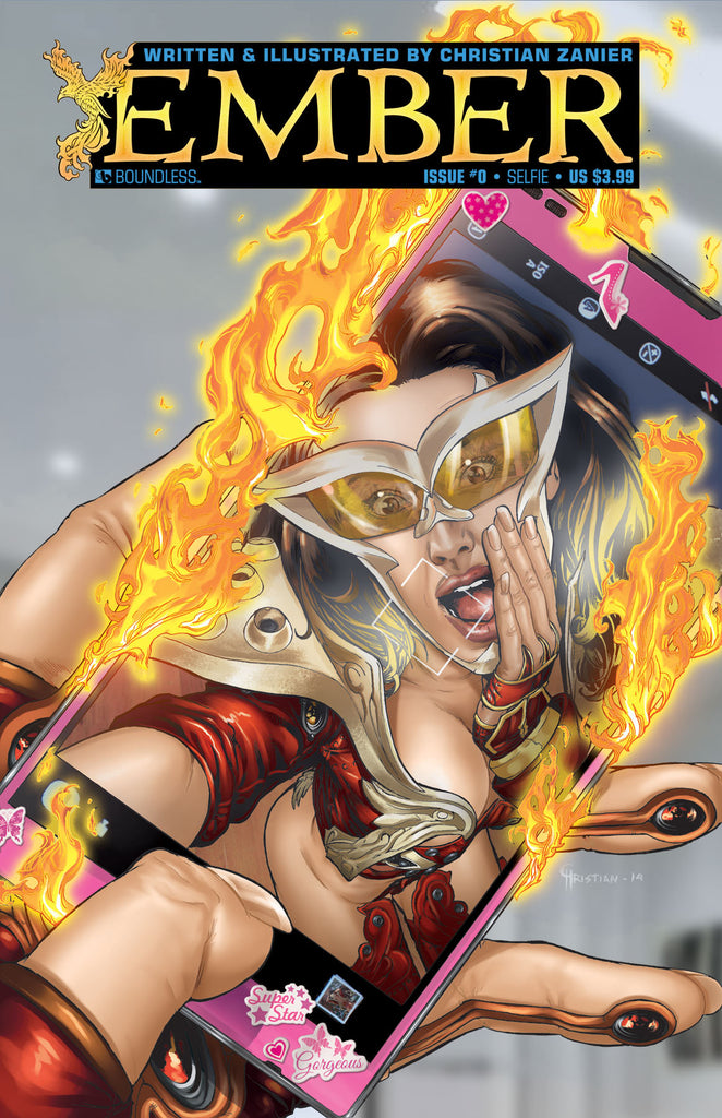 PRODUCT DESCRIPTION:    Ember blazes brightly as the newest femme fatale from Boundless Comics!  An all-new sultry series written and drawn by the incomparable Christian Zanier (Crossed: Badlands), Ember is the story of a very privileged young woman, given the twin gifts of stunning natural beauty and a fabulously rich father, who gets her life turned upside-down in the blink of an eye.  A horrific plane crash, with a mysterious experiment aboard, and suddenly Ember has gained an elemental power over fire.  But having a power and knowing how to master it are very different things.  This special #0 is a full-length introduction to the World of Ember, some glimpses of her origin, and peek into her life. As well as a meeting with her nemesis Wreckage!
