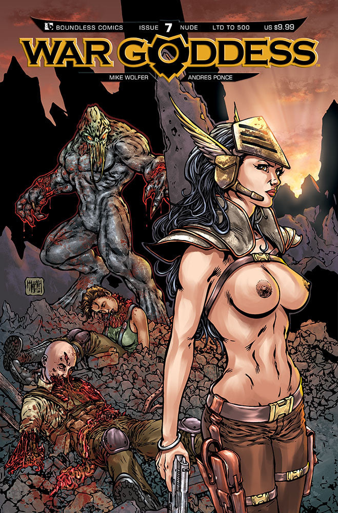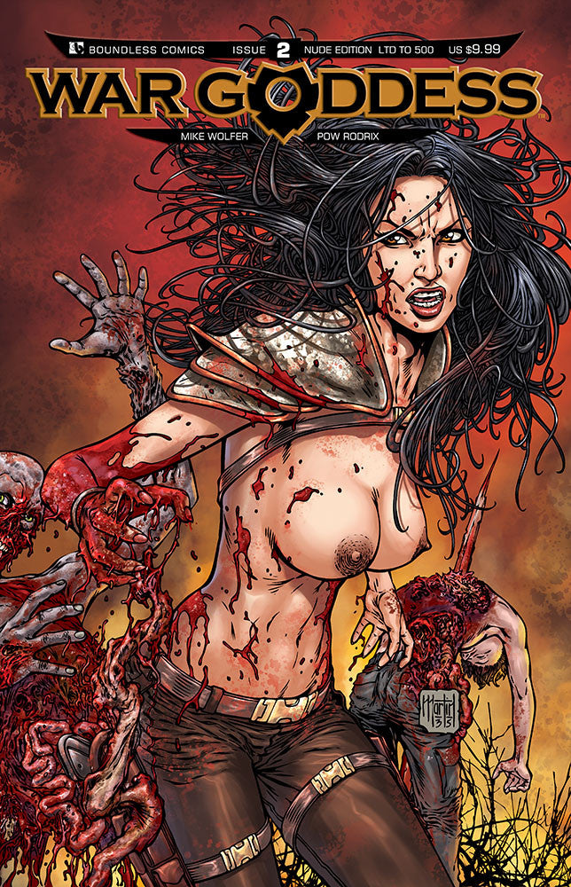 The 11 covers below represent all the nude covers for the War Goddess series - none of which were offered before now! Why so many never available? A very odd situation, but let's tell the tale. Most of the copies of the #1 Nude got destroyed in a horrible shipping accident (delivering driver put a forklift tong through the box). That pretty much bumped it off any of our plans, and while we had other nude covers being drawn, we never managed to get back on track for any of them being offered. A few issues never had the variants (no nudes on 5, 6, 11, and 12) and we had two variants on 8 and 9 as we were experimenting with the "Costume Change" concept. Yet, with all these starts-and-stops, we still never offered them! It ended up a unique situation, due to an early misstep, the entire program got stalled and never restarted. Phew, that was a long way of saying we can proudly present these for the first time - ever!