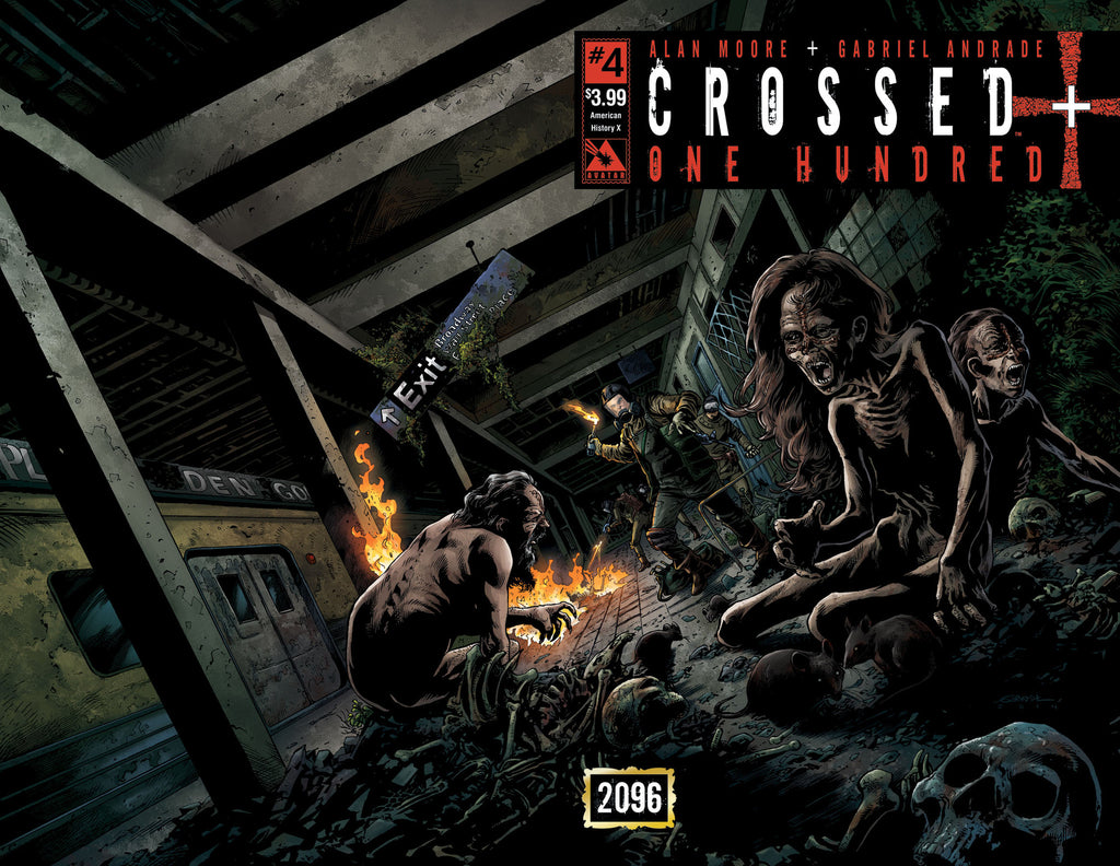 PRODUCT DESCRIPTION:  When human civilization is lost, does that mean we've lost our humanity?  Alan Moore returns to monthly comics and puts his unique stamp upon the Crossed universe, as he and artist Gabriel Andrade paint a vivid picture of the future 100 years after the outbreak!  Future Taylor and her crew uncover a horrific nest and get forced into making some brutal choices.  Attempting to piece together the past and the history of the Crossed, Future Taylor is discovering the horrifying truth of the plague that nearly wiped out the human race.  This multi-layered story delivers a new brand of horror to Crossed fans at the hands of the scribe that redefined the comics medium.