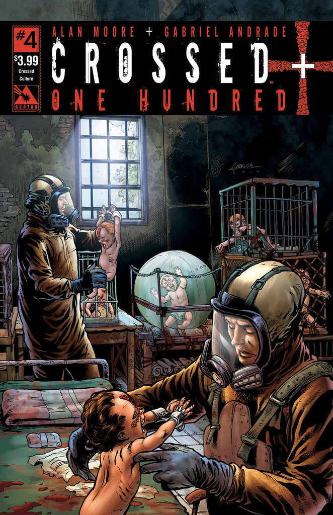 PRODUCT DESCRIPTION:  When human civilization is lost, does that mean we've lost our humanity?  Alan Moore returns to monthly comics and puts his unique stamp upon the Crossed universe, as he and artist Gabriel Andrade paint a vivid picture of the future 100 years after the outbreak!  Future Taylor and her crew uncover a horrific nest and get forced into making some brutal choices.  Attempting to piece together the past and the history of the Crossed, Future Taylor is discovering the horrifying truth of the plague that nearly wiped out the human race.  This multi-layered story delivers a new brand of horror to Crossed fans at the hands of the scribe that redefined the comics medium.