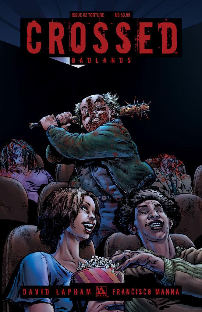 PRODUCT DESCRIPTION: DAVID LAPHAM returns to the brutal world of Crossed with a crime story told both before and after the Crossed outbreak!  Lapham’s vision for the misery of the Crossed is unparalleled.  A father is pushed to the brink when his family is tortured by a horrific thug.  But then C-Day happened and the World changed. A mystery to solve gets much harder in a World of psychotics!   There is no help and there is no hope.  There is only the Crossed.  Available with Regular and Red Crossed Incentive covers by Gabriel Andrade, Torture cover by Rafa Ortiz, Wraparound cover by German Erramouspe, and Fatal Fantasy cover by Matt Martin.