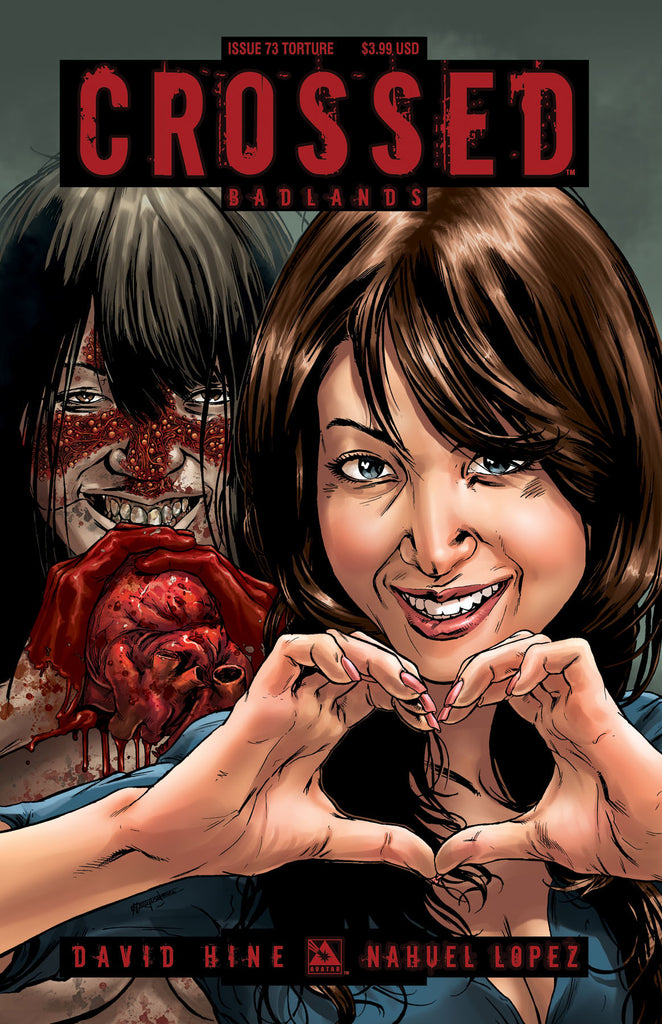 PRODUCT DESCRIPTION: The Crossed sickness spread over every continent and city. David Hine returns to the outbreak in Japan to spin a tale of misery as several friends must face the insane horrors of an infected society driven by bloodlust. As civilization crumbles they must find a safe place in the heart of 125 million psychopaths. Available with Regular and Wraparound covers by Fernando Heinz, Torture cover by Christian Zanier, a Fatal Fantasy cover by Michael DiPascale, and a special Red Crossed Incentive cover also by Heinz.
