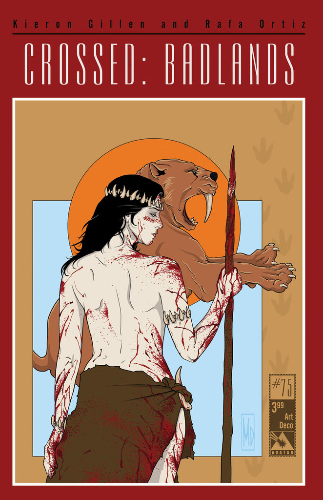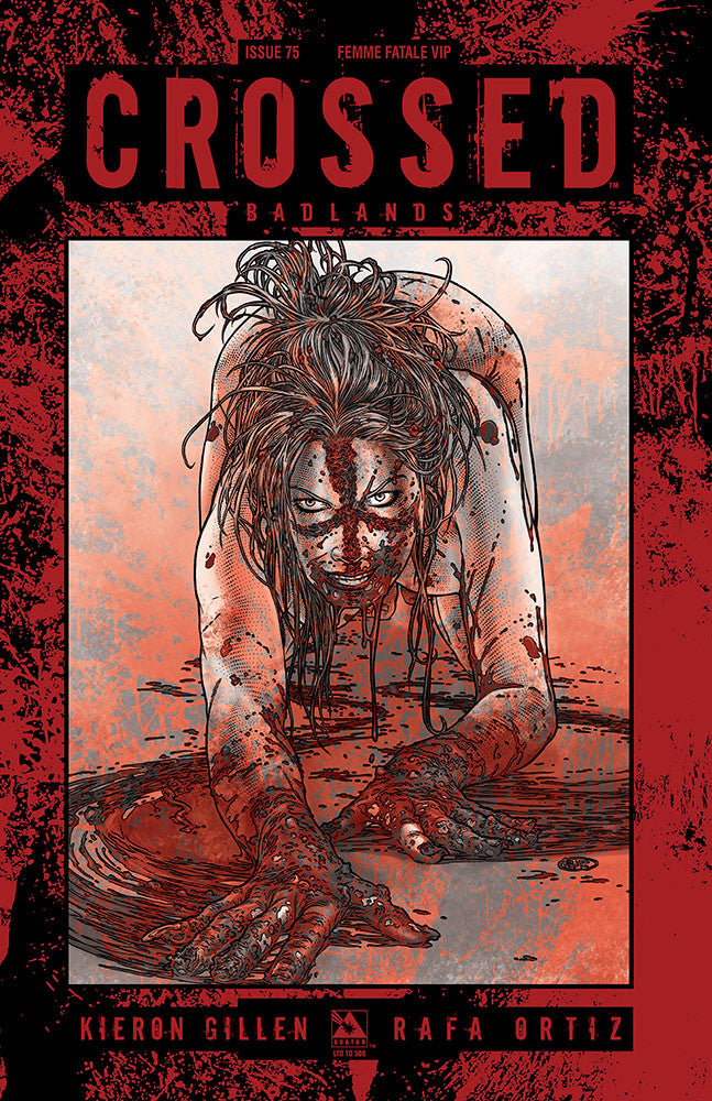 PRODUCT DESCRIPTION:   Prepare for C-Day 2015 with all ten of the solicited Crossed: Badlands #75 covers in this deluxe box set, and three exclusive editions!  The Regular, Wraparound, Torture, Art Deco, Femme Fatale, Homo Tortor, Ritual, Megafauna Mayhem, Terror Birds, and the Red Crossed order incentive are included.  But that is not all!   You also get two Crossed: Badlands #75 exclusive VIP editions and the super-rare Saber Tooth cover, all three of those only available in this boxed set!  A $90 value for only $49.99!  Limited to just 500 sets, these are sure to go fast!