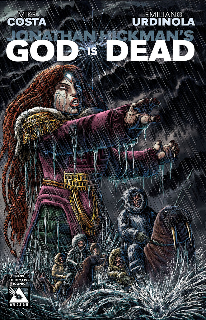 PRODUCT DESCRIPTION:  Decades of searching has led to an incredible find.  All of the stories of God is Dead intersect as the master plan is revealed.  Gods, men, and would-be conquerors alike discover that the final price of absolute rule is annihilation.  The unbelievable tale being woven in God is Dead begins to clarify and the ramifications of the story will shock you to the core! Available with a Regular Cover by Jacen Burrows, End of Days and Enchanting Covers by Jose Luiz, Iconic Cover by Raulo Caceres, Carnage Wraparound Cover by German Nobile, and a special Gilded Retailer Incentive cover also by Caceres.