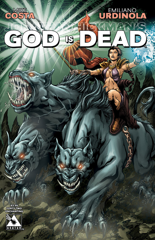 PRODUCT DESCRIPTION:  After all the insanity and the misery the human race has endured, do they have the fortitude left to recover from the unfolding horror?  Mike Costa spins the latest shocking chapter in the world of divine destruction. Available with a Regular Cover by Jacen Burrows, End of Days, Enchanting Covers by Jose Luis, Iconic Cover by Juan Frigeri, Carnage Wraparound Cover by German Nobile, and a special Gilded Retailer Incentive cover also by Frigeri.