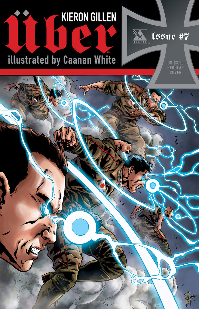 PRODUCT DESCRIPTION: KIERON GILLEN's Uber has taken the comics world by storm. The war in the Pacific has changed. With the deployment of Ubers into the naval combat, suddenly the balance of power is shifting. The Japanese super soldiers have a specific goal and supported by their Kamikaze pilots, they are succeeding in devastating the Allied fleet. As the Allies race to catch up to their enemies' development of Ubers, they must find a way to stem the tide of destruction raining down upon them. Available with Regular or Wraparound cover by Caanan White, Propaganda Poster cover by Michael Dipascale, and a special Blitzkrieg Incentive cover by Caanan White