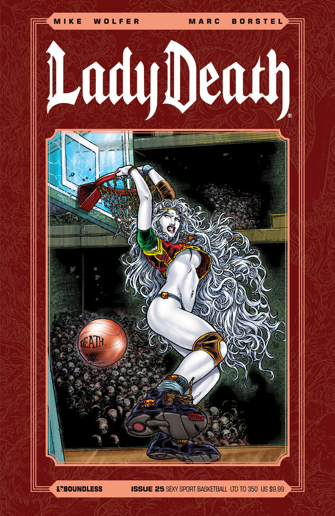 PRODUCT DESCRIPTION: Superstar artist Juan Jose Ryp reimagines the iconic Lady Death in a series of nine images interconnected through sports. In this exclusive issue Lady Death is a terror on the hardwood in basketball! Each is limited to 750 copies.
