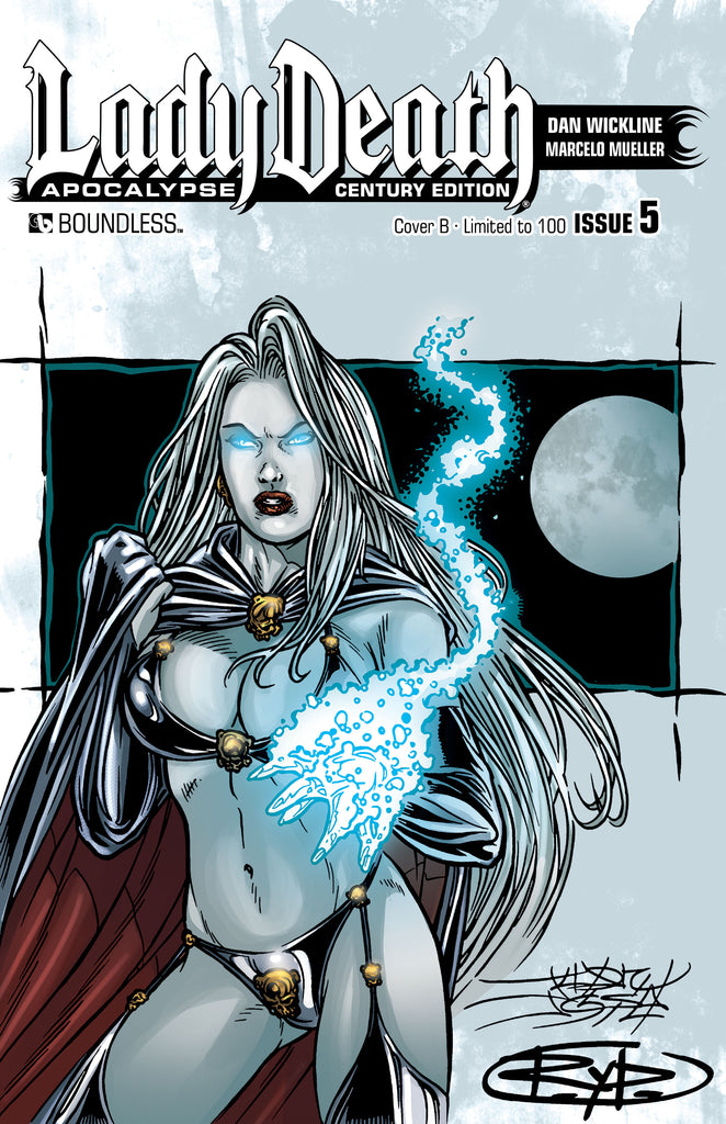 PRODUCT DESCRIPTION: Now available as single covers for the first time, and at killer prices!  Master artist Juan Jose Ryp provides cover art on all of these Lady Death: Apocalypse Century editions! The Century line is the rarest of all Lady Death collectibles and is limited to a scant 100 copies each!