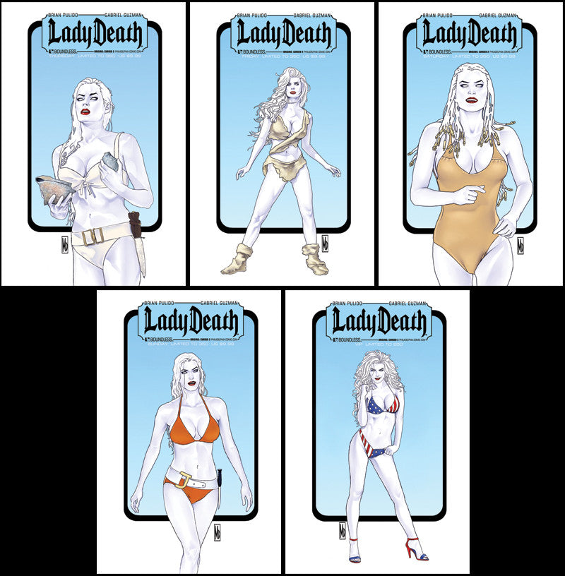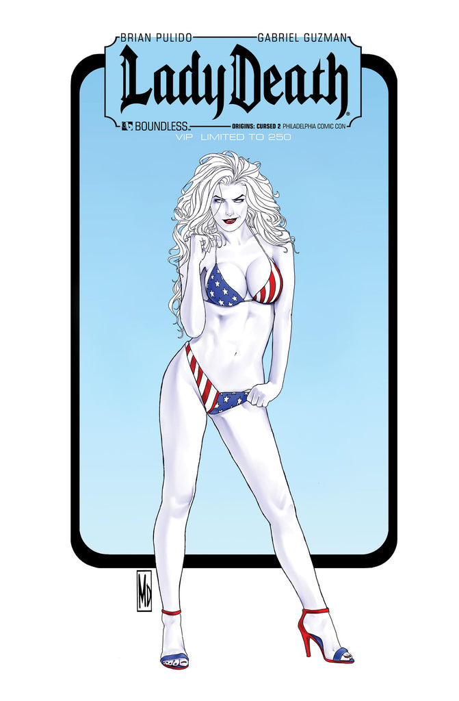 The complete Thursday, Friday, Saturday, and Sunday Lady Death Origins: Cursed #2 Wizard Philadelphia Comic Con limited edition set PLUS the exclusive VIP Set Bonus only available with purchase of the package. Limited to 250 sets.