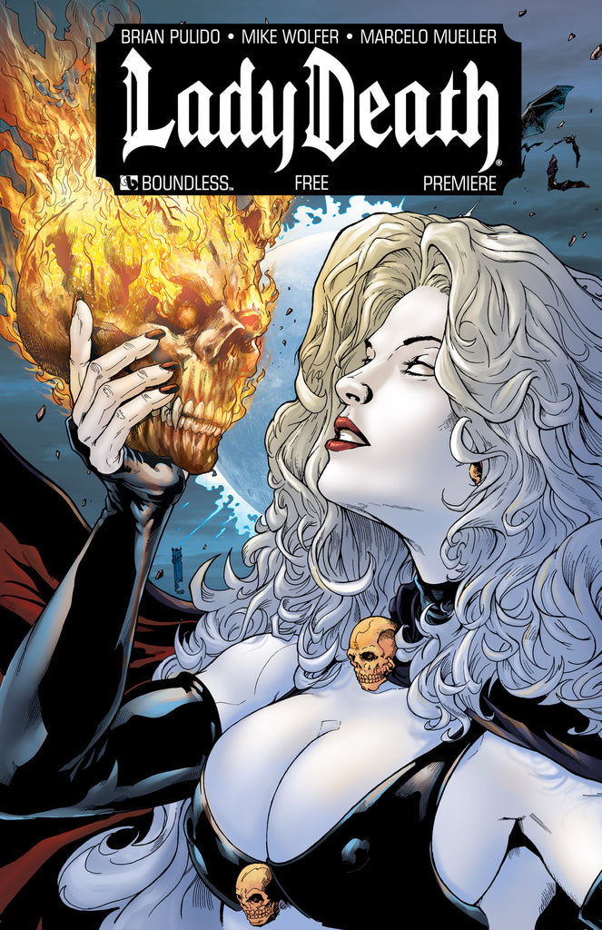 PRODUCT DESCRIPTION: Lady Death is back! This special book is the first chapter in an all-new, on-going Lady Death series that will be coming out from Boundless Comics. The most terrifying tale of Lady Death is about to begin, in an Apocalyptic saga that will tear through two dimensions and give birth to a new horror that will leave long-time fans reeling! Before the new Lady Death on-going monthly series is unveiled, this crucial prelude chapter will set the stage for the destruction of everything she once knew... And it comes to you absolutely free! For the first time, the most monumental threat Lady Death has ever faced will be revealed, the viciously sadistic villainess named Death Queen! She has Lady Death's face, she has her powers, and before their first encounter is over, she will have her life! This is the Lady Death that fans have been waiting for, in an all-out, blood-drenched spectacle that will usher in a new era of greatness in the illustrious history of one of comic's most recognized and beloved femme fatales! Co-written by Mike (Gravel, Wolfskin) Wolfer and original creator Brian Pulido, this series promises to be the most powerful Lady Death tale ever! Amazing new talent Marcelo Mueller provides the luscious art and Digikore brings the dramatic colors wrapped in a dramaticl new cover by Garrie (Supergod) Gastonny! Also ask your retailer about one of 1-in-50 Avatar Retailer Bonus Editions!