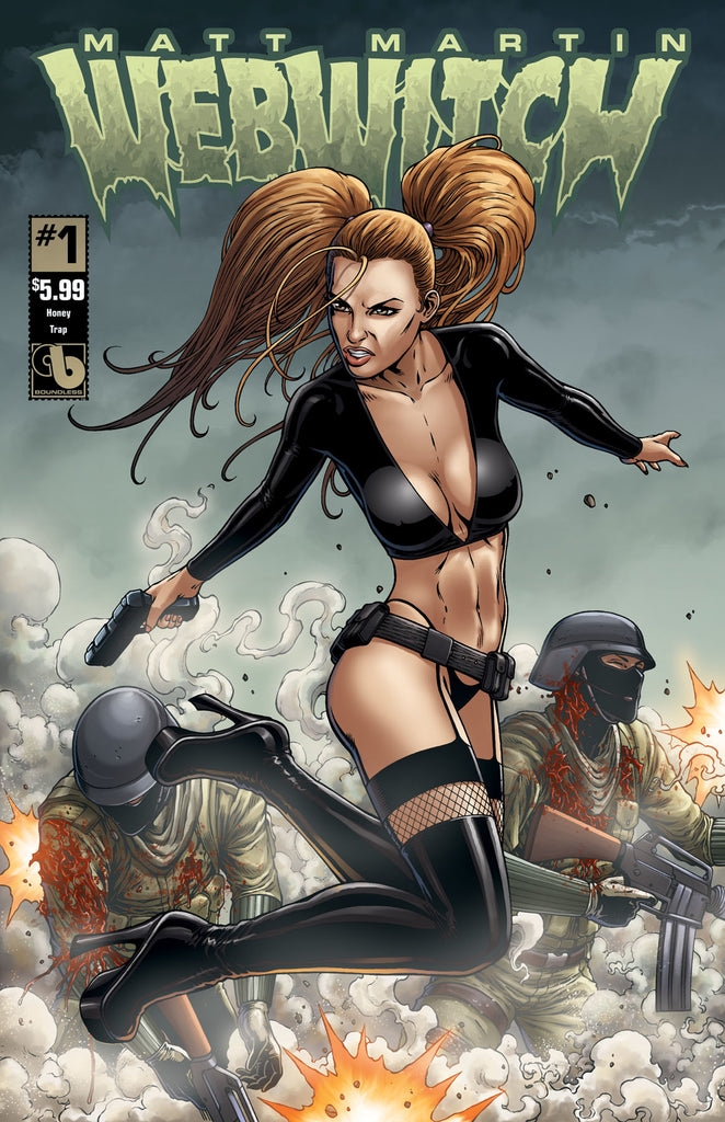 PRODUCT DESCRIPTION: Ten Years in the making, Matt Martin's Webwitch launches with an enormous 64 page first issue! Written and drawn by the cover maestro, Matt Martin, Webwitch is the story of a sultry secret agent, with skills far beyond her peers. She never suspects those heightened reflexes and amazing agility are due to alien DNA, locked away in her system. All seems to be perfect for Nina as she falls in love with her handler and together they go on exotic missions... until her world crumbles. The Webwitch alien race comes to Earth, bringing carnage and death, and activates her as a sleeper agent. Now with her true nature revealed, and new abilities to change form, Nina is torn between worlds . Webwitch is a thrill ride of everything from monster carnage and alien melting death rays to sexy women, and even sexier aliens!