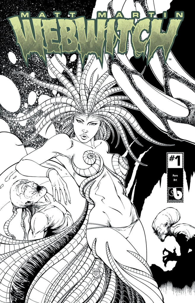 PRODUCT DESCRIPTION: Ten Years in the making, Matt Martin's Webwitch launches with an enormous 64 page first issue! Written and drawn by the cover maestro, Matt Martin, Webwitch is the story of a sultry secret agent, with skills far beyond her peers. She never suspects those heightened reflexes and amazing agility are due to alien DNA, locked away in her system. All seems to be perfect for Nina as she falls in love with her handler and together they go on exotic missions... until her world crumbles. The Webwitch alien race comes to Earth, bringing carnage and death, and activates her as a sleeper agent. Now with her true nature revealed, and new abilities to change form, Nina is torn between worlds . Webwitch is a thrill ride of everything from monster carnage and alien melting death rays to sexy women, and even sexier aliens!
