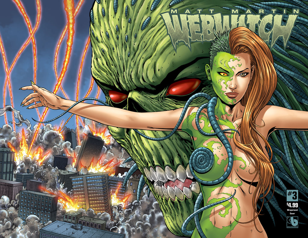 PRODUCT DESCRIPTION: Matt Martin, the maestro of alien seduction, delivers an erotic horror tale like you’ve never seen before. Aliens and action abound as the Spider-Nation’s plans are unveiled and extinction is the order of the day. Nina is torn between two worlds in a battle for ultimate control over the Earth. The decisions she makes will either save the human race or doom every last living being to a spot on the Spider-Nation all you can eat buffet. We also continue the full-color presentation of Tim Vigil's Webwitch series! Don't miss the amazing array of sexy covers with this issue including Regular, Wraparound, Honey Trap, a Retailer Incentive Pure Art by Matt Martin, and Alien Seduction cover by Juan Jose Ryp. Christian Zanier illustrates the Vintage Vixen (a homage to sexy spies of the past) and the ultra-collectable Costume Change 6 cover set (with sexy topless and nude covers included!) that is limited to just 250 sets.