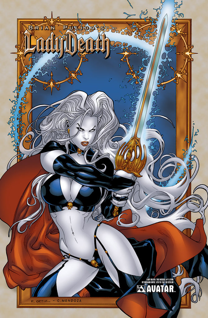 PRODUCT DESCRIPTION: This lithograph is of Richard Ortiz's cover to Lady Death: The Wicked #1. Printed on high-quality card stock with cutting edge technology for a perfect high-resolution print suitable for framing. Each is strictly limited to only 150 copies! Every copy of this digital art print ships  with a seal of authenticity.