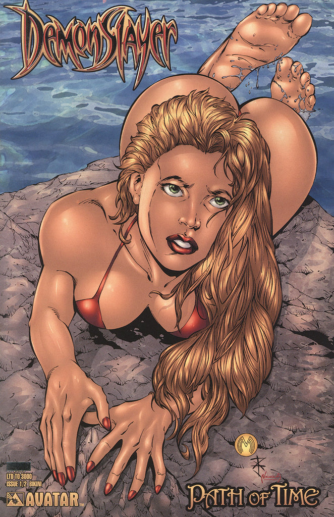 PRODUCT DESCRIPTION: The super-sexy Demonslayer bikini cover is now available in this limited Platinum foil edition!