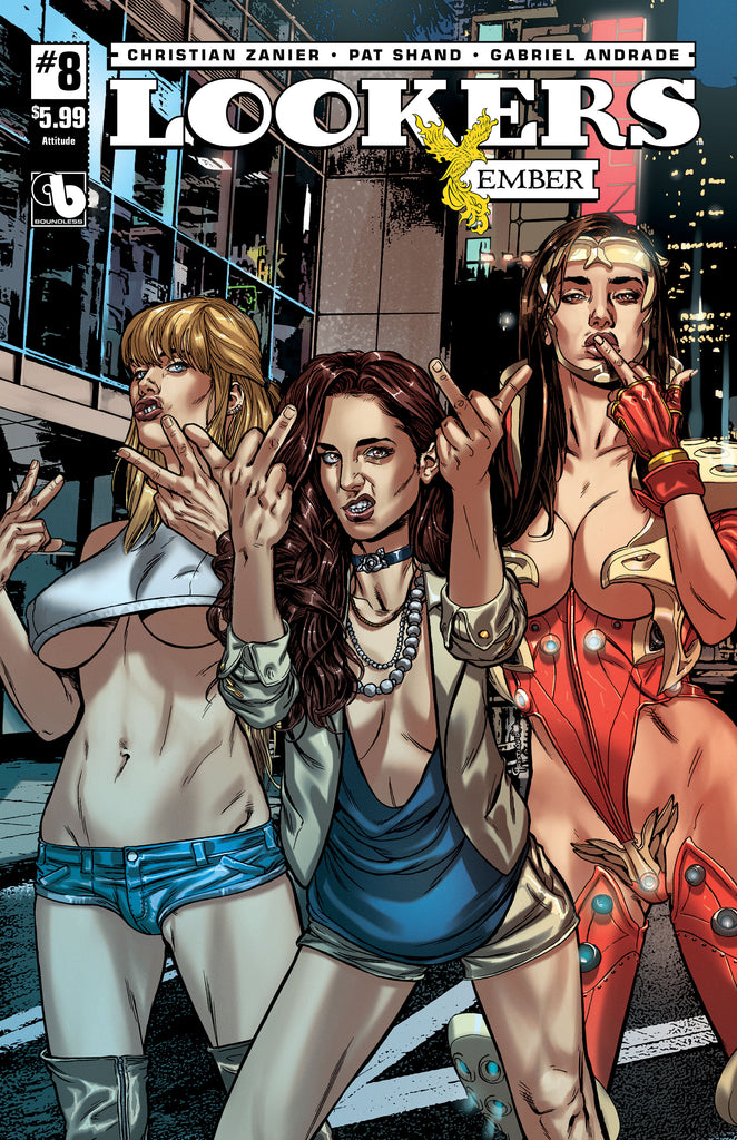 PRODUCT DESCRIPTION: A gun fight in Mexico, bikini babes on jet skins, Ember on the prowl – another rocking issue! Each issue also has an Ember solo story, written and drawn by Christian Zanier! Available with these sultry covers: Regular (and Nude), Red Hot (and Nude and Adult), Wraparound (and Nude), Sultry Adult (and Extreme and Insane) and a set of six Attitude by Christian Zanier - Workout (and Nude) and GGA Homage (and Nude) by Renato Camilo - Sexy Spies (and Nude) by Raulo Caceres - Luscious (and Nude) by Matt Martin - and a Fifty Shades Homage Nude by Camilo that is limited to just 50 copies!