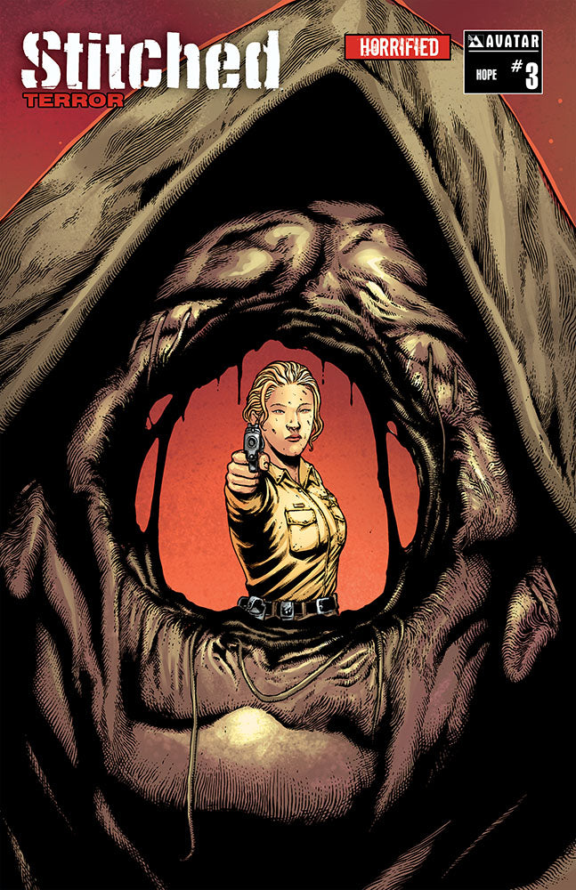 The undead horror of the Stitched returns, and now unleashed in America in double-sized issues from writer Pat Shand and artist Daniel (Uber) Gete! Sheriff Kat Noble keeps the peace on a quiet border town. But as young girls start to go missing, she’s pulled into a supernatural slaughterhouse and stumbles into the makings of the ultimate terror plot – Stitched loose in the streets of the USA! We could use your help to get back into regular horror series, launching here with a tight three issue series, but each one oversized!