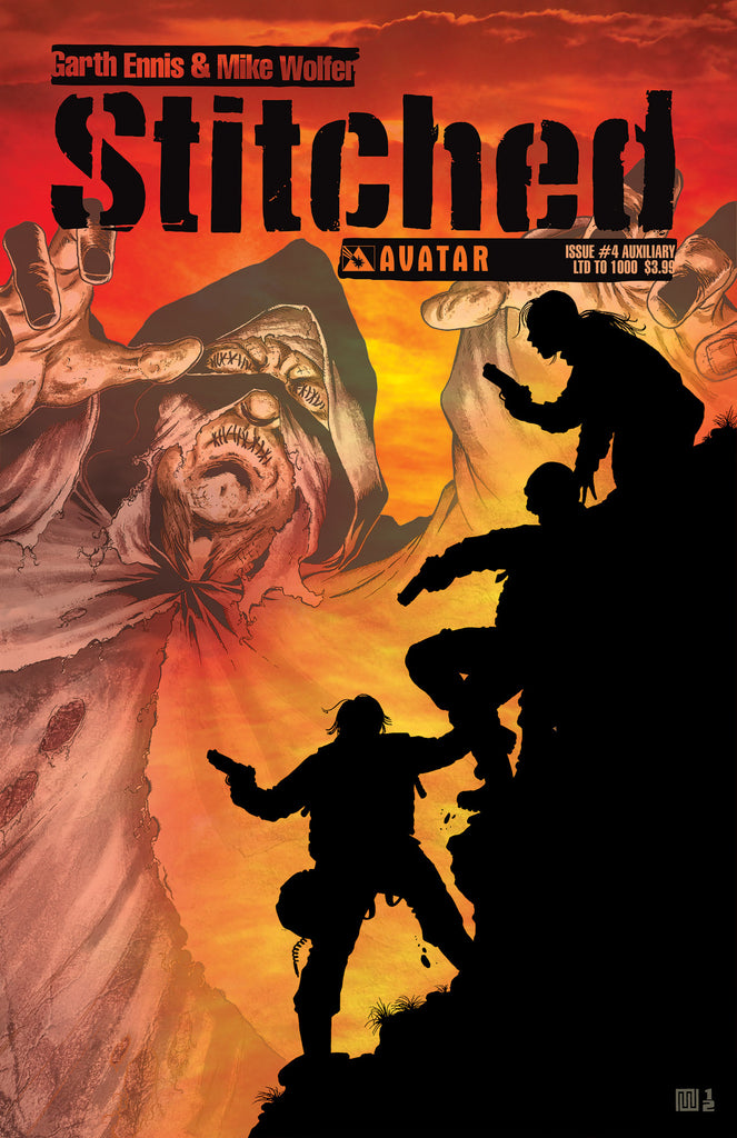 PRODUCT DESCRIPTION: Ennis' new vision for modern horror has scoured fans with a sandstorm of supernatural vengeance. Get in on the fight against the Stitches with this special first printing of the fourth issue limited to 1000 copies and with a new cover by series artist Mike Wolfer.