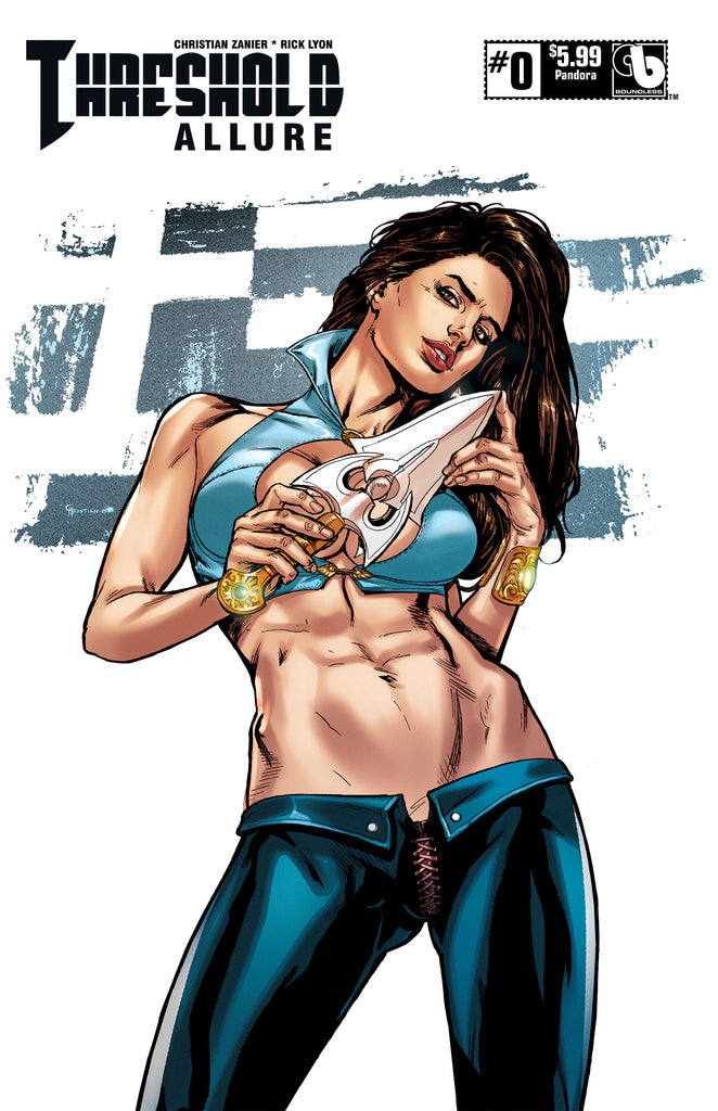PRODUCT DESCRIPTION: The legendary title Threshold returns featuring not only our classic characters, but brand new ones! This series, Allure, features an all-new character Praxi! She’s the Greek goddess of justice, Praxidike, now inhabiting a new body, and reunited with Pandora for adventures, as they have throughout time! This series features art from Rick Lyon, previously lost by the sands of time, but now finished and joined with new chapters from Christian Zanier! It’s all topped off by the full story also Beautified in the back, for that extra sexy zest!