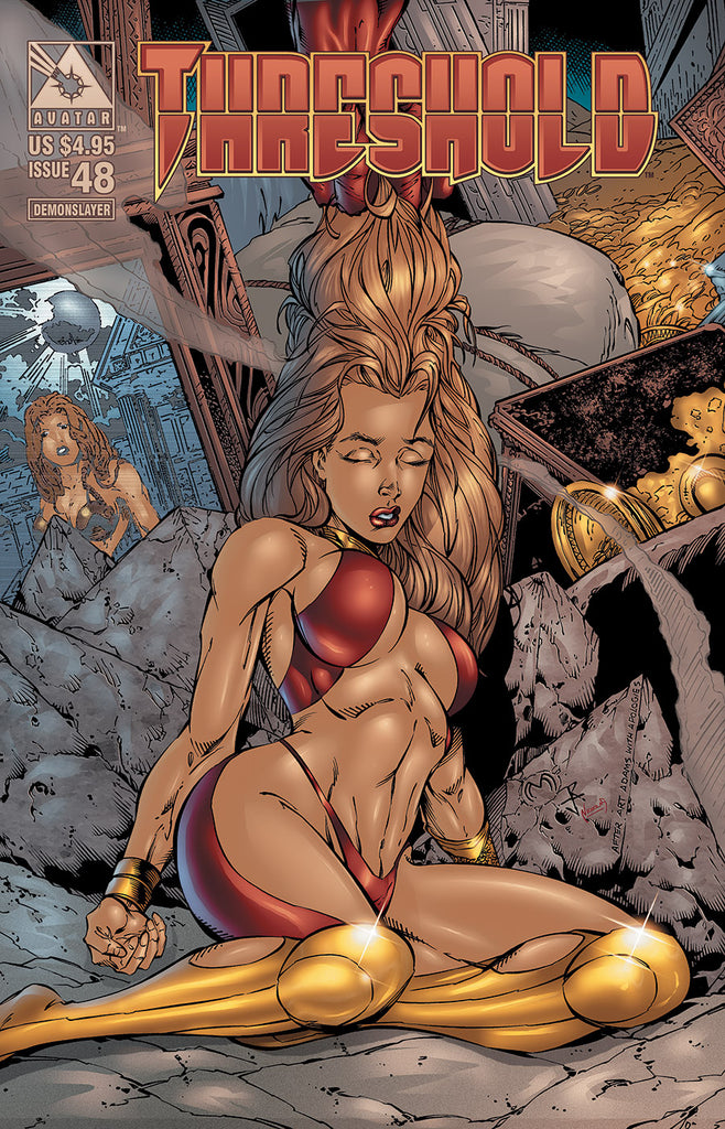 PRODUCT DESCRIPTION: Red hot Marat Mychaels and his creation Demonslayer continue her extended run in Threshold with some unusual demon trouble. It seems that the Roman Catholic church has some unexpected visitors underneath Vatican City and Jaclyn may be the only one who can help. But when her old foe Irkala turns out to be behind it all, and Michael gets captured, the sparks really start to fly! Writer Robert Lugibihl and Italian artist Ivan Abraini bring Coral back from the pages of Avengelyne: Dark Depths into her own story with Pandora! Rounding out this stellar line-up is an all new story featuring Dan Parson's Harpy in some of the most beautiful pages of his career! Threshold continues with its new quarterly schedule as the longest running American anthology.