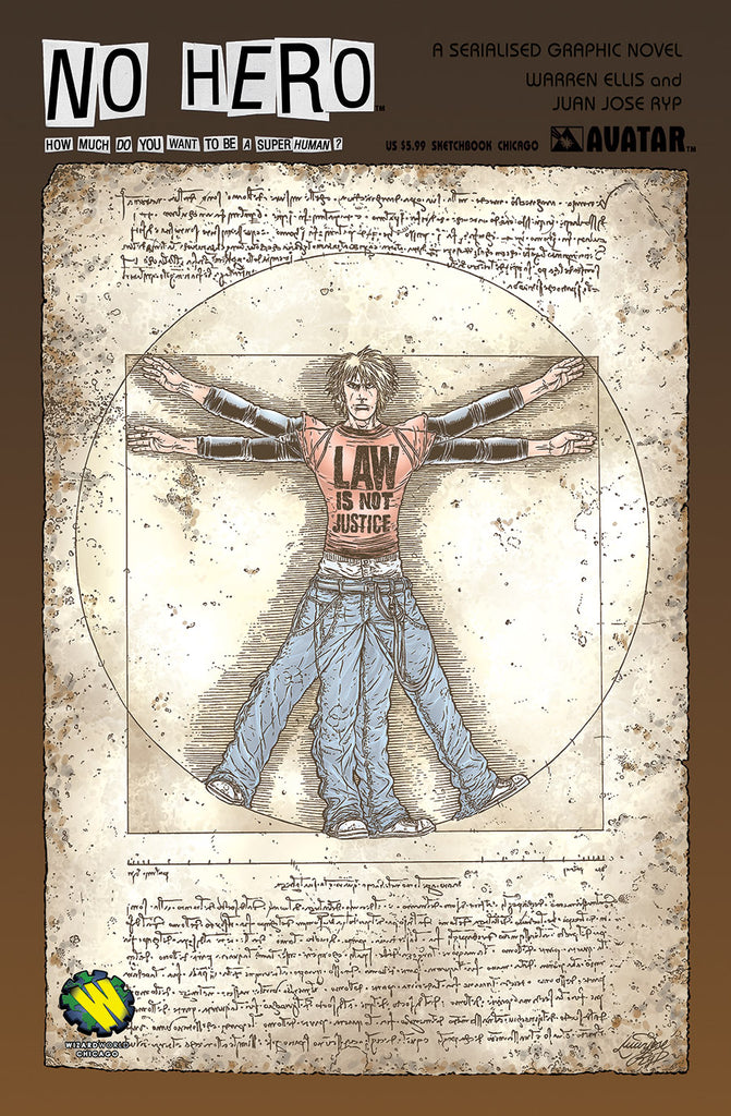 PRODUCT DESCRIPTION: Artistic maestro Juan Jose Ryp did so much stunning design work for the No Hero series --character designs for three generations of the incredibly detailed NO HERO world -- that we just had to make it available! Featuring 16 pages of all-new pinup material that won't be seen anywhere else, this sketch collection is a special sneak-peak at the characters of Ellis and Ryp's new super-human series! This edition features a new cover by Ryp, was previously only available at Wizard Chicago convention, and is limited to 1500 copies.