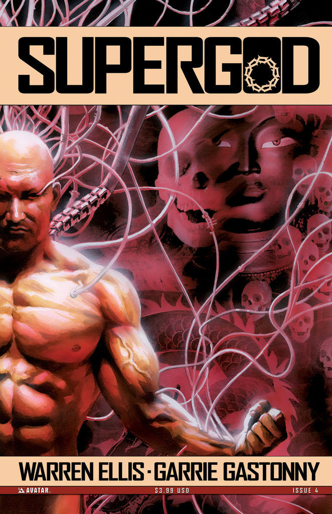 PRODUCT DESCRIPTION: From the creator of Black Summer and No Hero comes the craziest, nastiest, most soulless and criminal superhero comic of the year! SUPERGOD issue 4: The world is at war: or, more to the point, its chosen and unleashed superhuman messiah figures are. Are any of them still human enough to realize they're going to bring about the end of life on earth -- and do any of them care? This is what a superhuman arms race would look like. This is what asking to be saved by men who can fly would look like. Take every superhero comic ever published, shove them into a nuclear-powered blender, soak it in bad vodka and set the whole thing alight -- and SUPERGOD will crawl out and eat your brain! This five issue color series is drawn by Garrie Gastonny with colors by Digikore. SUPERGOD is available with a Regular cover painted by Felipe Massafera, a Wraparound by series artist Garrie Gastonny, and a special retailer incentive Church Of Supergod Edition!