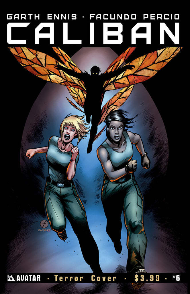 PRODUCT DESCRIPTION: The penultimate issue of the best new horror sci-fi series of 2014 is here! GARTH ENNIS turns the silent and stale corridors of space into a walking nightmare for the few remaining crewmen of the Caliban mining starship. As creeping death rounds every corner, the truth of Karien’s rampage begins to unfold. But it’s too late for salvation as the horror of the unknown becomes a miserable companion to those that cling to life on the doomed freighter. No one is safe in dead space. Available with Regular, Wraparound, Terror, and Design Sketch Incentive covers by Facundo Percio and an ultra-limited Dark Matter edition of just 1500 copies.